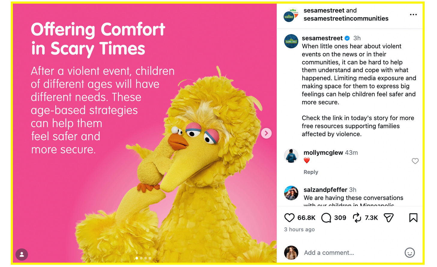Sesame Street addressed the news by sharing resources on “offering comfort in scary times.”