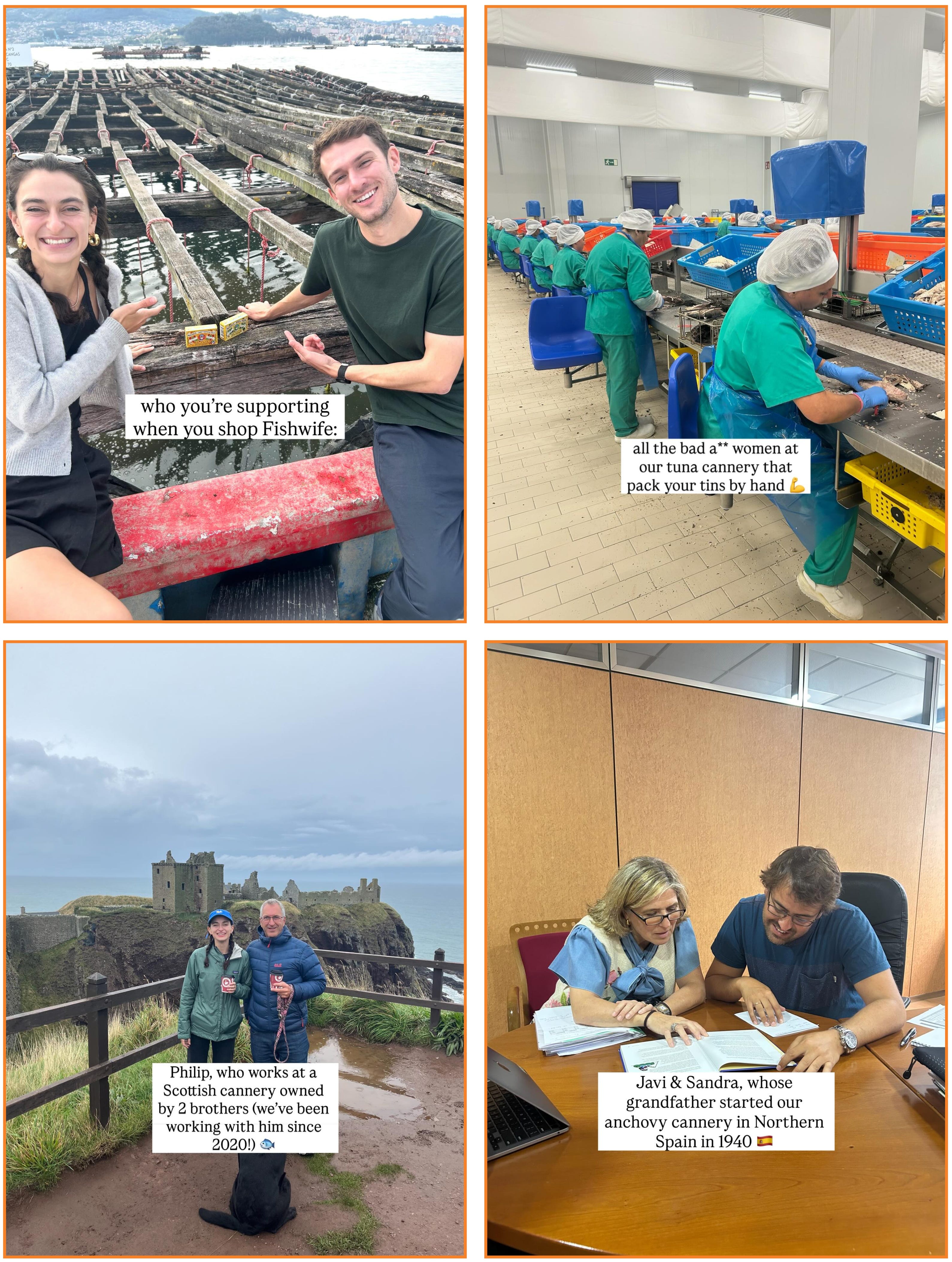 Lauren: Becca and our Head of Ops, Jack, visit our cannery partners across Europe every summer so to say I’m spoiled with incredible sourcing content is an understatement. We focus on bringing humanity into the process: showing our cannery partners faces, sharing their names, and giving real visibility into the hands that bring each tin to life. Paired with thoughtful, story-driven carousels, it makes sourcing feel personal instead of just a step in the supply chain.