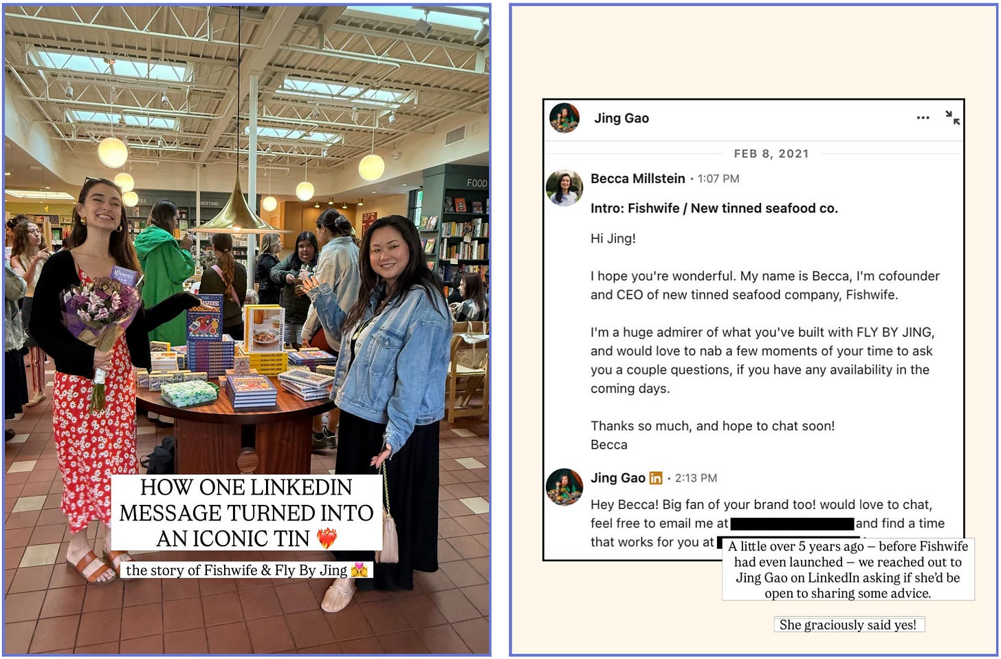 Becca: I told Lauren she didn’t have to answer this one but now I’m wishing I hadn’t, because she’s the one responsible for smearing my mug all over Fishwife’s social media!! As we all know too well, founder-led companies tend to lean into being founder-led, and for good reason. A face makes a brand more relatable, easier to root for and all-in-all is an unfair advantage against other companies that might lack an origin story or founder character to loop the story of the brand back to.