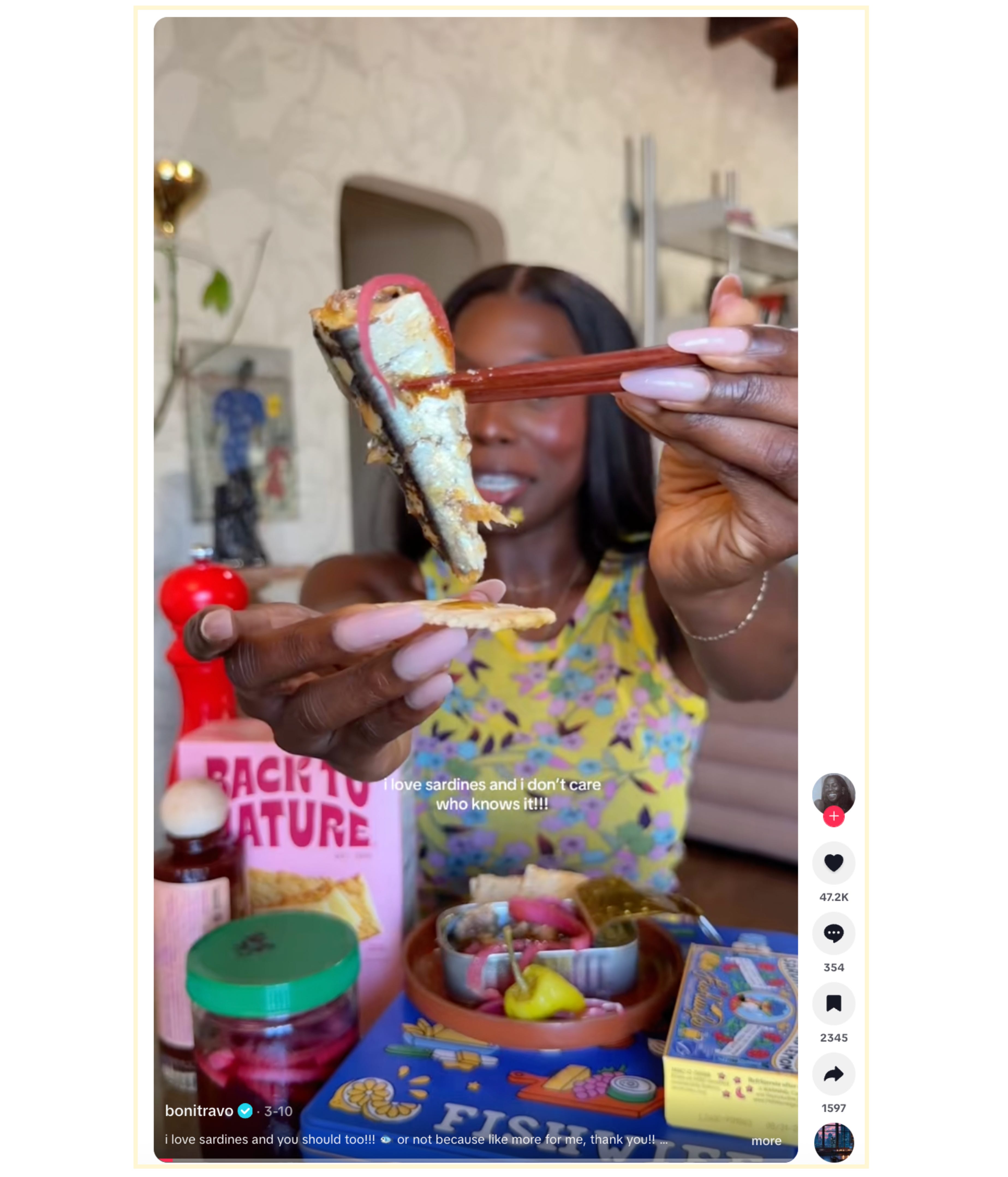 We prioritize creators who already have a genuine food ritual. It’s less about size and more about behavior: are they already building snack plates, cooking with tinned fish, etc.