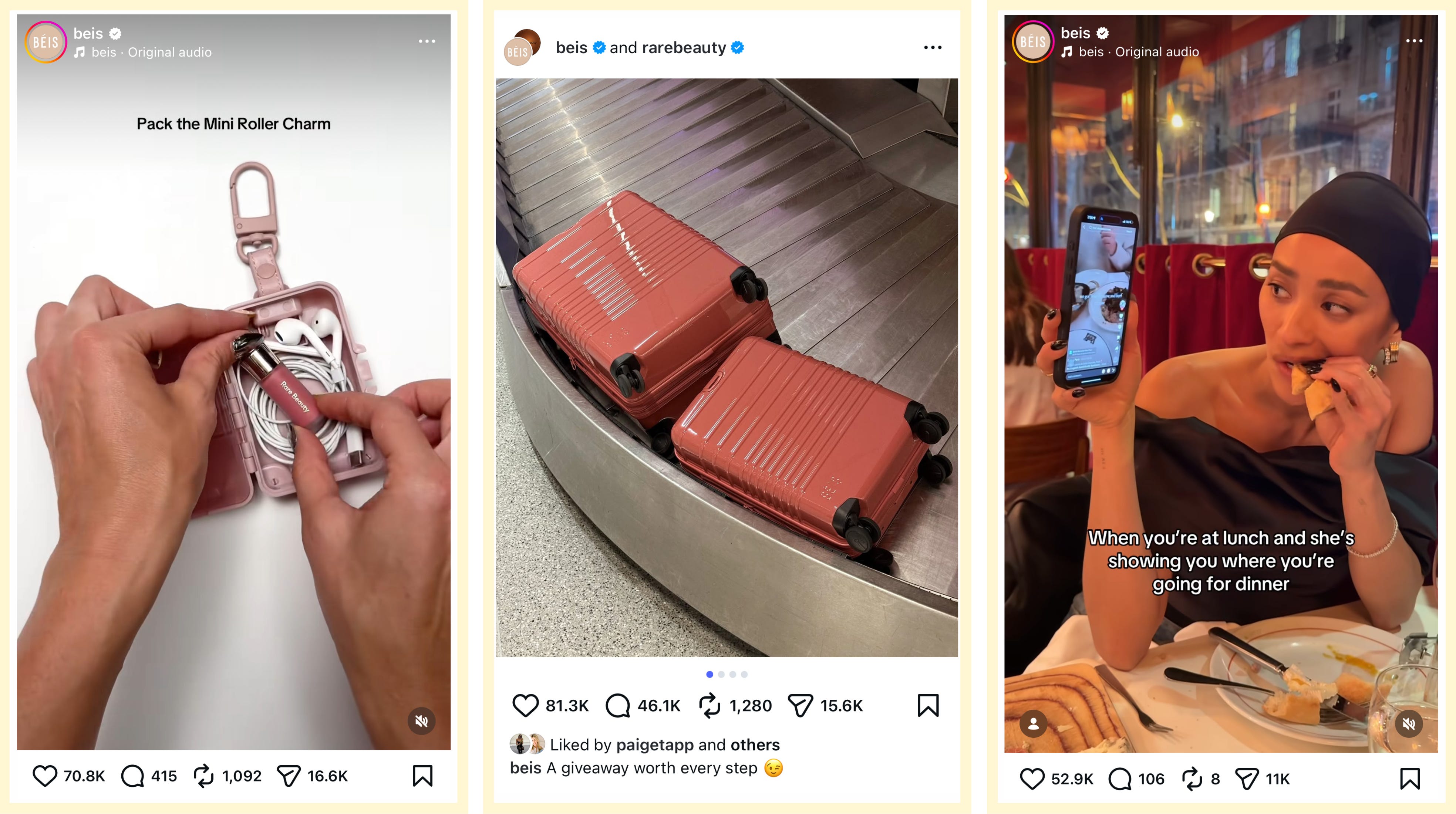 Last year, when I asked subscribers what brands they think exemplify great social, travel and lifestyle company BÉIS was one of the most mentioned. It makes sense, their founder content is genuinely fun and they dream up smart activations that break through. The brand’s collaboration with Gap was one of my favorite social roll outs of 2025. Hours ago they announced their latest campaign with Tyriq Withers.