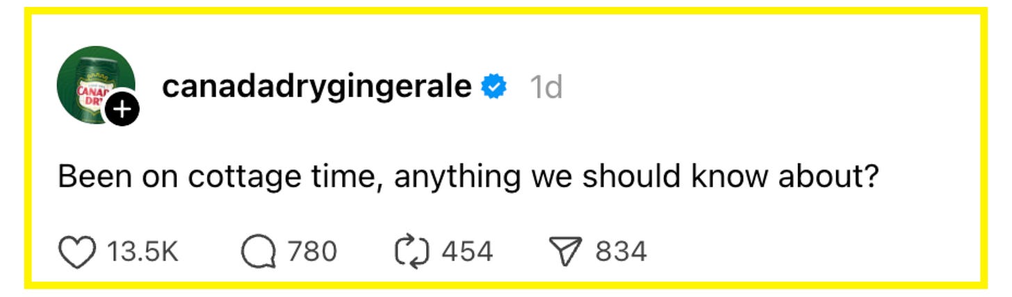 One month later, Canada Dry Ginger Ale finally responded to the Heated Rivalry conversation. Someone wrote, “As someone who worked in social for years, I can only imagine the layers of approvals it took for you to be allowed to post this and the scrutiny it probably went through before you did. But at least you’re here now. Welcome, the fans are the best!”
