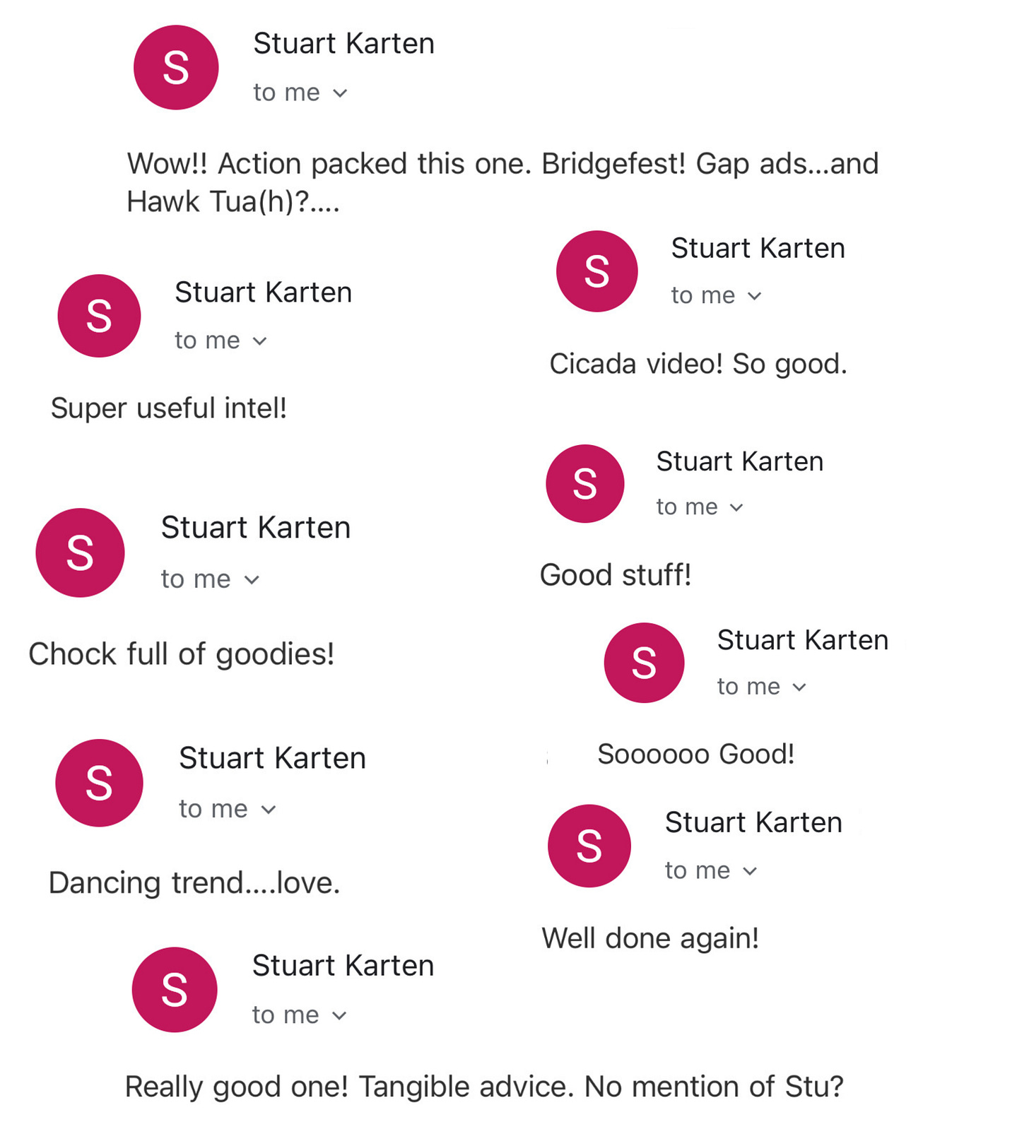Today’s newsletter is for my dad, who responds to every single one of my sends. He doesn’t follow many brands on social but he follows Grillo’s Pickles. He eats Grillo’s Pickles. He DMs me Grillo’s Pickles Reels. He is a Grillo’s Pickles superfan.