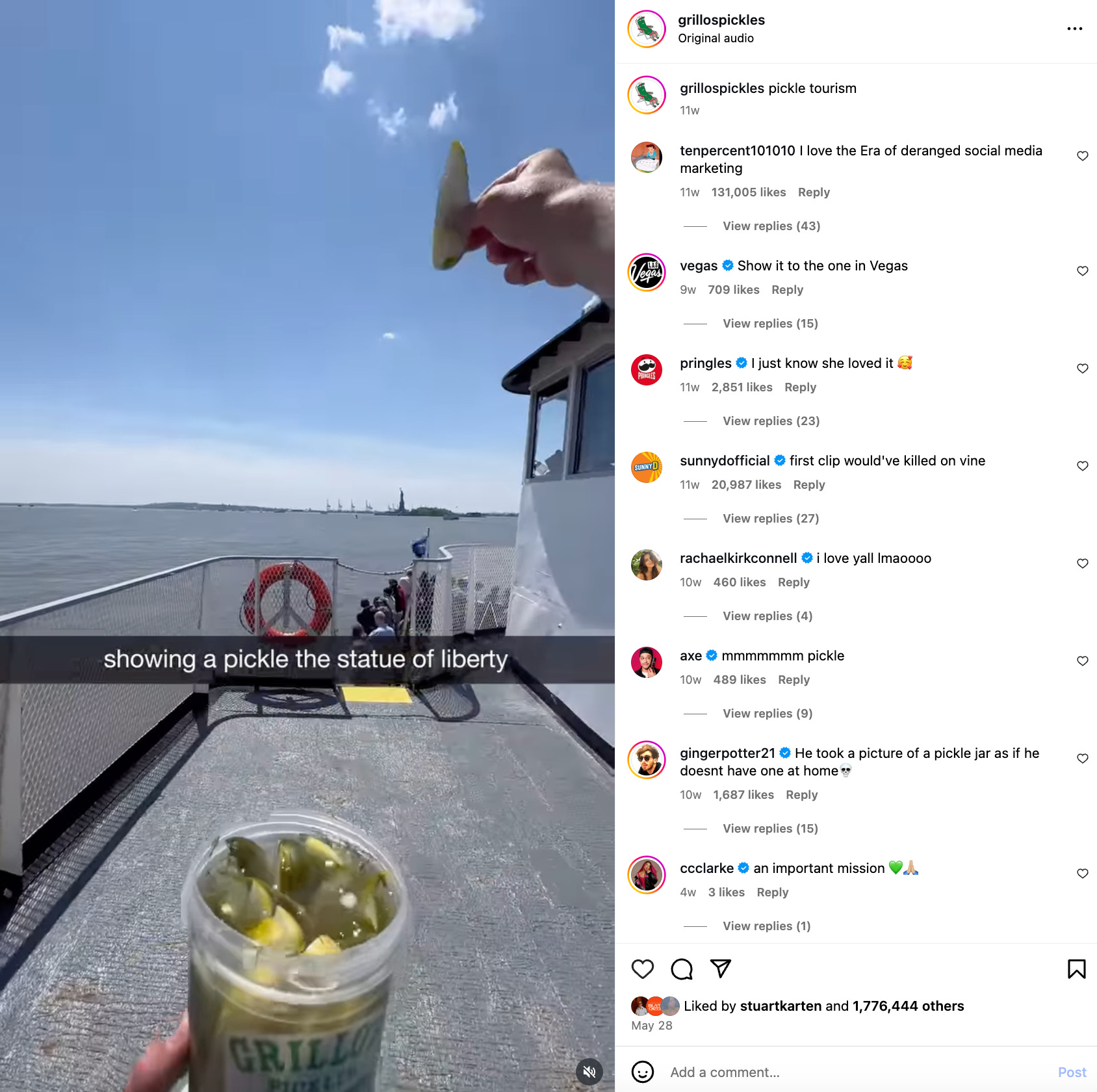 ML: One of my favorite recent posts is the “Graduation Pickle” video we posted in late June. It was super collaborative and absolutely crushed across channels! We sent one of our content creators to Chicago to offer pickles to strangers. He’s great at meeting people where they are and creating authentic, grabby moments. He came across a woman who’d just graduated, and she didn’t want a pickle at first, but changed her mind. To give the moment more oomph, we recorded a plaintive "WAIT!" over that footage, adding humor (and a reason to keep watching).