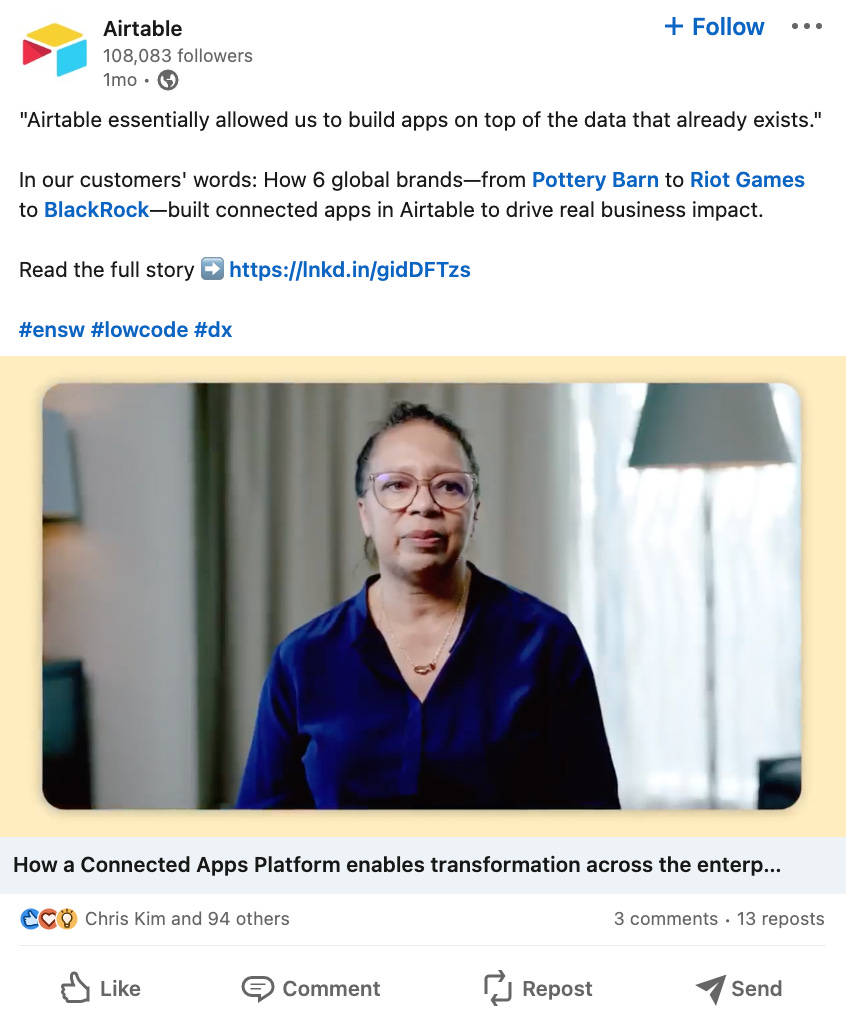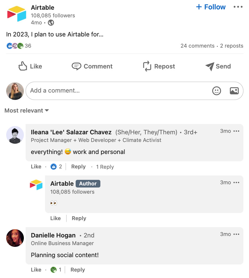 RK: How does Airtable's LinkedIn strategy differ from its strategy on other networks?