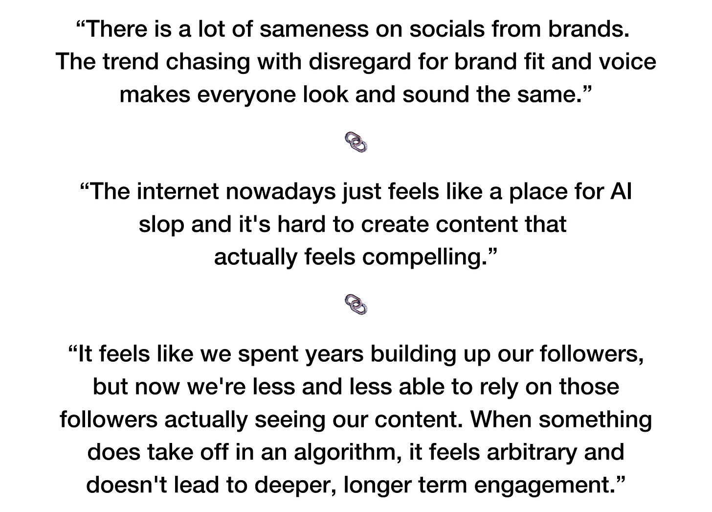 I do my best to maintain a level of optimism about working in social media, but there are some days where I go there. Every post looks the same. Trends “perform” but don’t build brand equity. Algorithms favor rage bait. AI is everywhere and audiences don’t seem to care. Strategies that used to work, now fall flat. All of this matters. None of this matters.