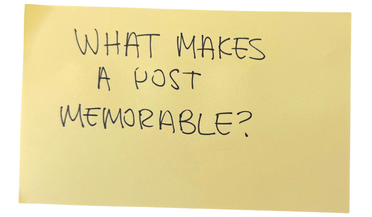 I’ve been thinking a lot about what makes a social media post memorable. Why do some posts leave me the second I scroll away? While others stay lodged in my brain to be referenced in a conversation years later?