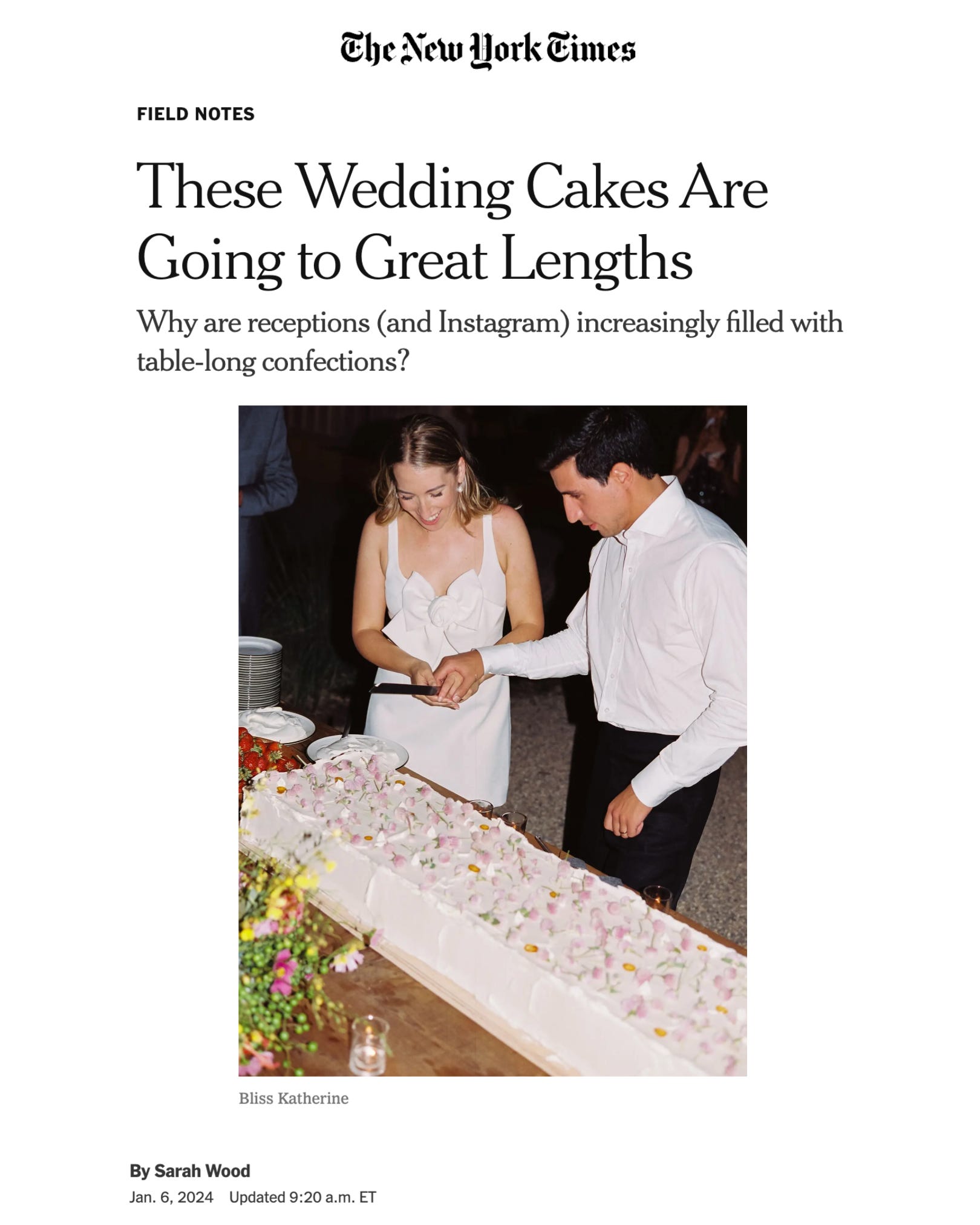 Ahhh! I was in The New York Times this weekend! Well, technically speaking…my wedding cake was in The New York Times this weekend. But there’s a photo of me and my husband cutting our four-and-a-half-foot cake and some fun quotes too! You can read the full article by