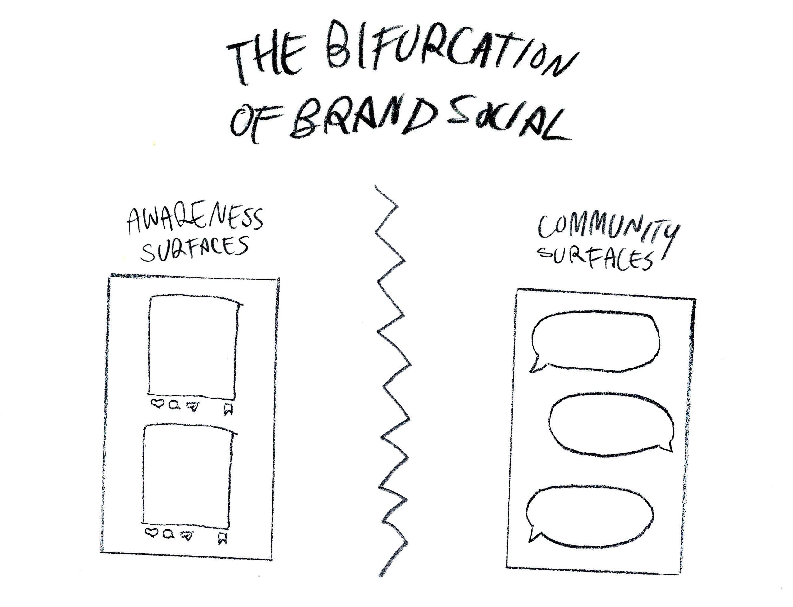 New Social requires brands to think of certain features within an app for awareness and think of other features within an app for community. If your feed is your front door, then your DMs are your dinner table. How do you make content that invites someone in?