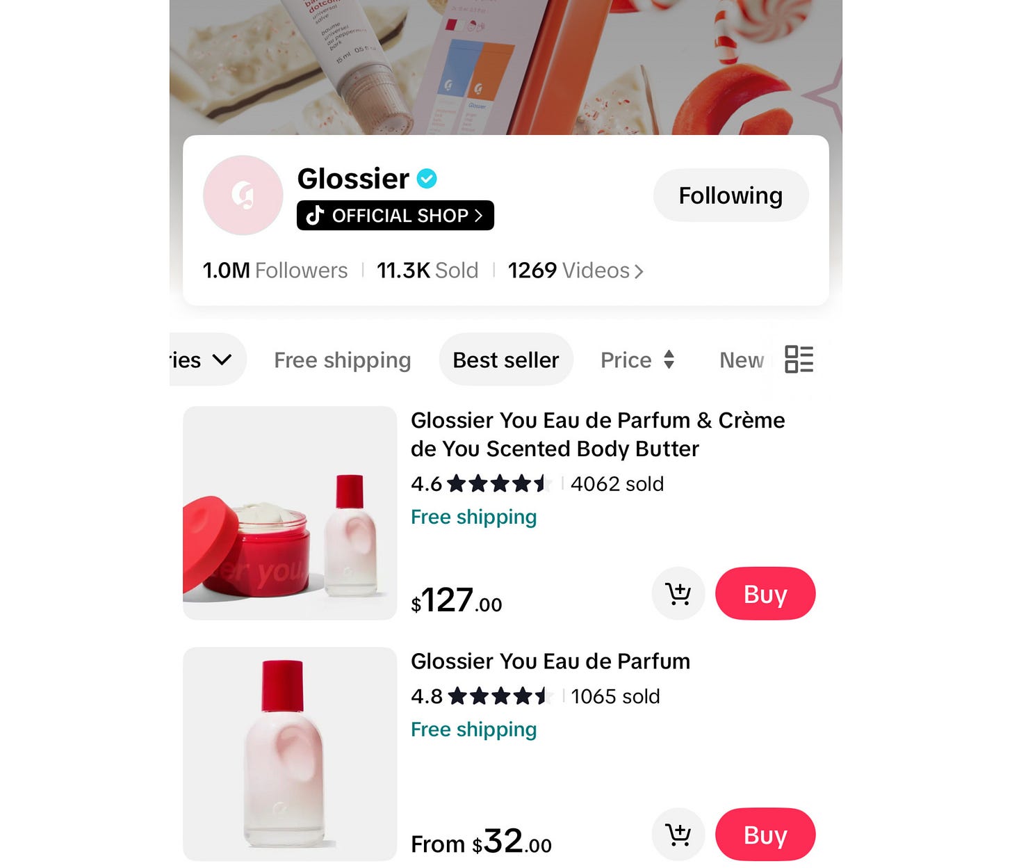 LA: TikTok Shop tightened the gap between discovery and conversion. Even though we only joined in mid-2025, we’ve already seen how it creates a new behavioral loop: people don’t just want to see Glossier content—they want to experience the product immediately. It’s encouraged us to think more modularly about how we structure content, and it’s also opened the door to new types of creators who introduce Glossier to audiences outside our traditional ecosystem. For us, TikTok Shop is becoming another meaningful entry point for discovery and a way to meet people exactly where they already are.