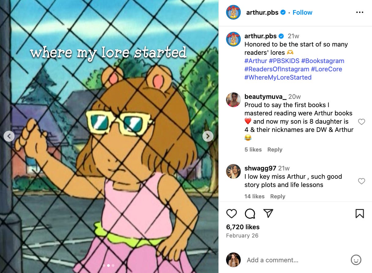 In today’s newsletter I am speaking with Cathleen Cusachs, social media manager for GBH Kids and person behind the @ArthurPBS accounts. GBH is the largest producer of PBS programs in the country, and the home of popular PBS KIDS brands like Arthur, Molly of Denali, Pinkalicious & Peterrific, Work It Out Wombats!, and so many more.