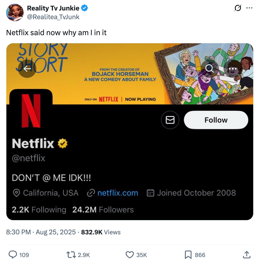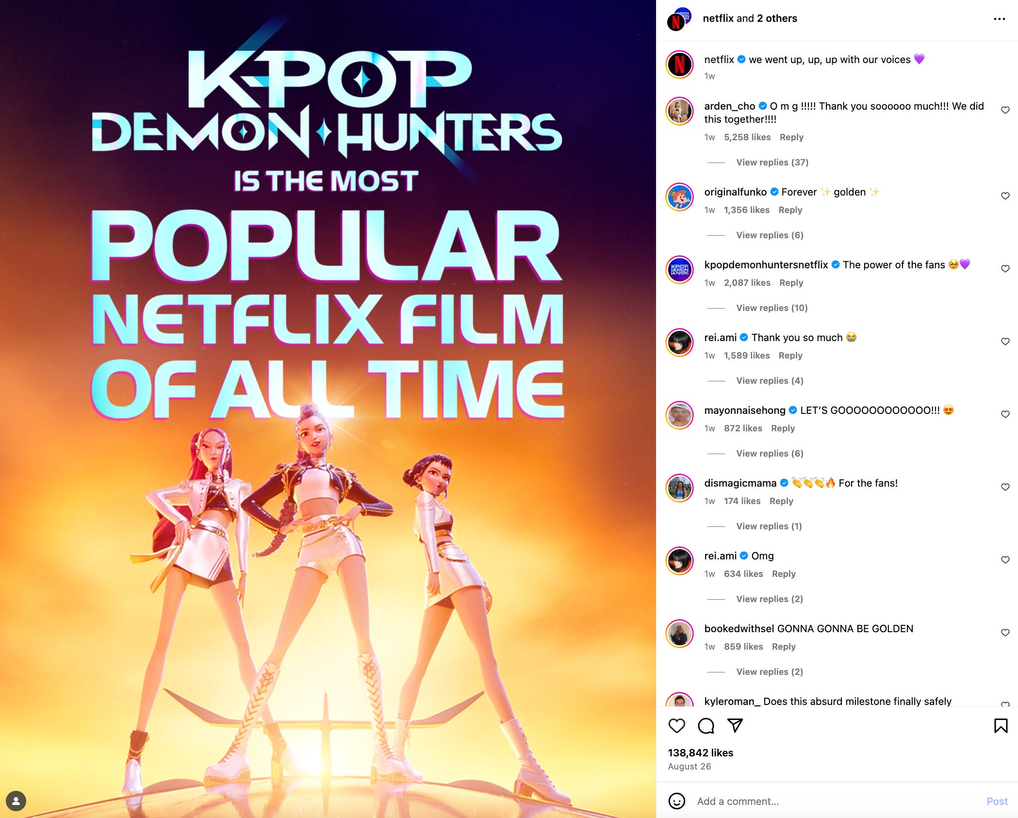 It’s been a busy few months for Netflix. They just had their largest pre-launch social campaign ever with Wednesday. It was just announced that KPop Demon Hunters is the most popular Netflix film of all time. Between all of that, they got pulled into some Love Island drama—and promptly responded.