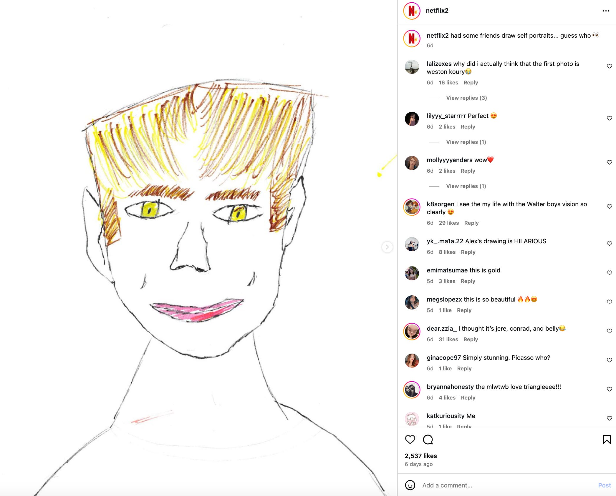 RK: Are you able to talk a little bit about how Netflix structures the social media team? There are so many accounts and titles and even a finsta…